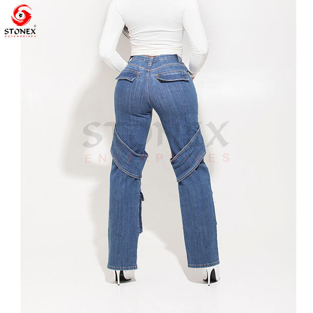 New Pattern Ladies Cargo Denim Jeans Latest Design High Quality Women New Arrival Cargo Trouser/Pants