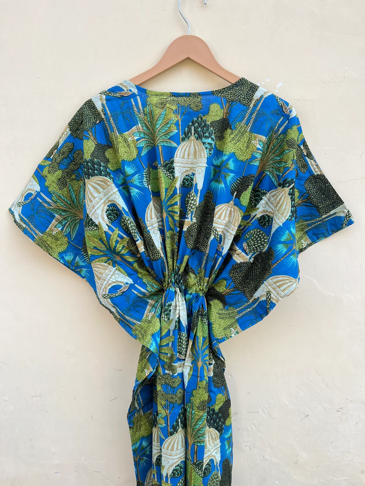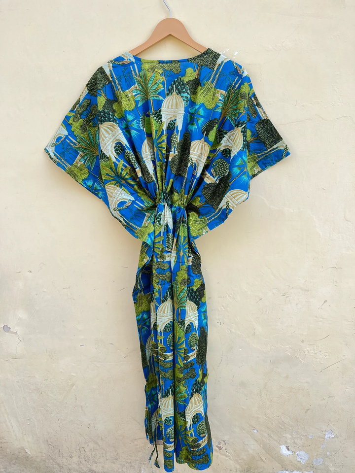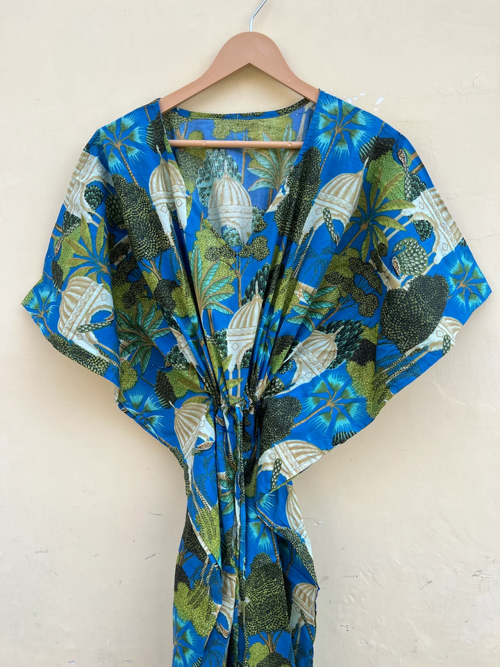 New Peacock Bird Print Cotton Kaftan Handmade Boho Long Maxi Kaftan Casual Floral for Spring Summer Autumn Winter Modern Gifts