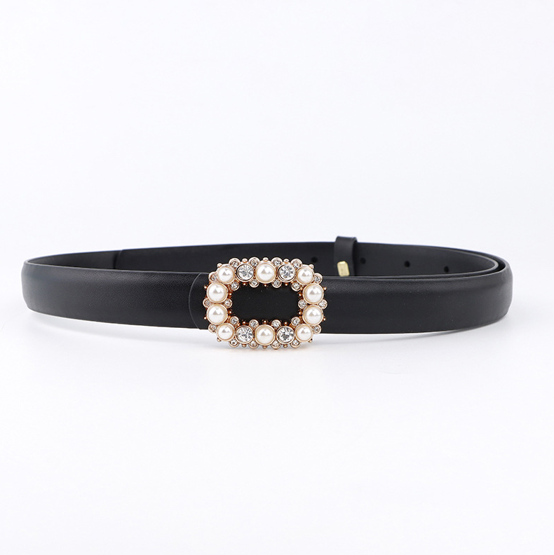 New Pearl Buckle Women's Thin Waistband Fashionable Plate Buckle Decoration Niche Personality Dress Leather Belt for Women