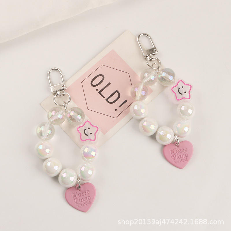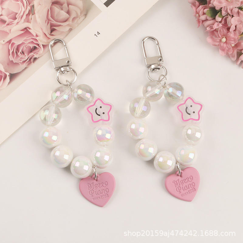 New Pearl Pentagram Car Keychain Pendant Creative Pink Heart Accessories Fresh Bag Decoration