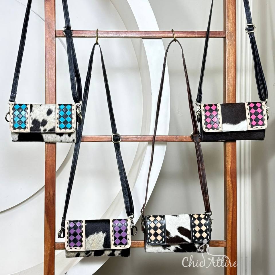 Product name:Hand Tooled Cowhide Leather Crossbody Clutch