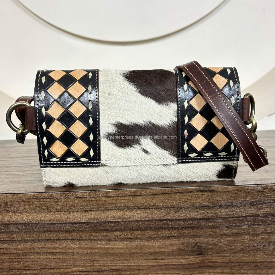 Product name:Hand Tooled Cowhide Leather Crossbody Clutch