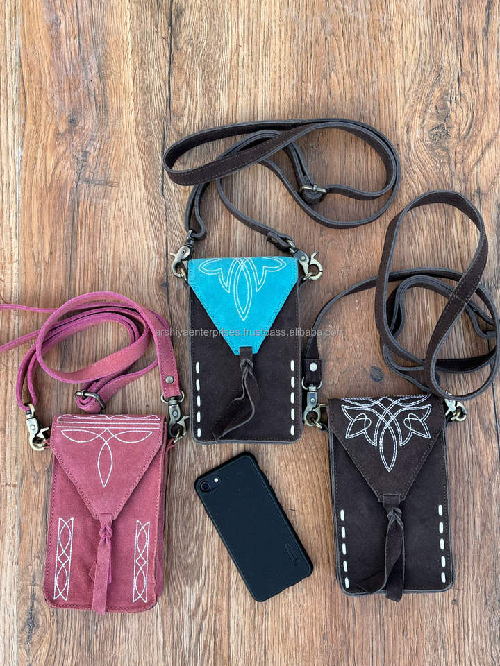 New Personalized Boot Stitch Suede Leather Phone Pouch Bag Genuine Leather Slim Cell Phone Bag Phone Carrier Women Crossbody Bag