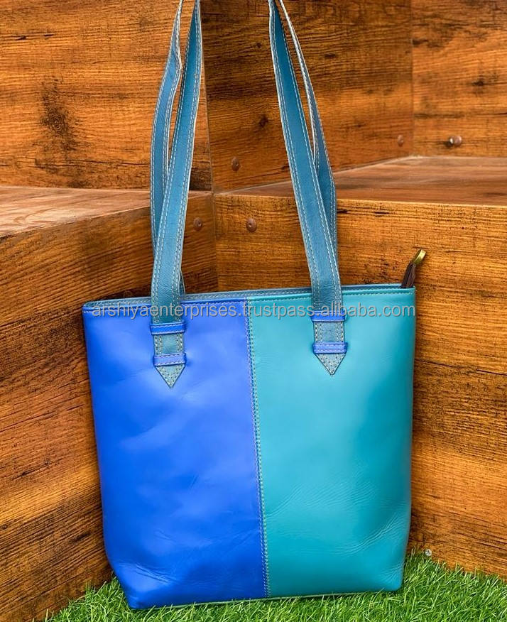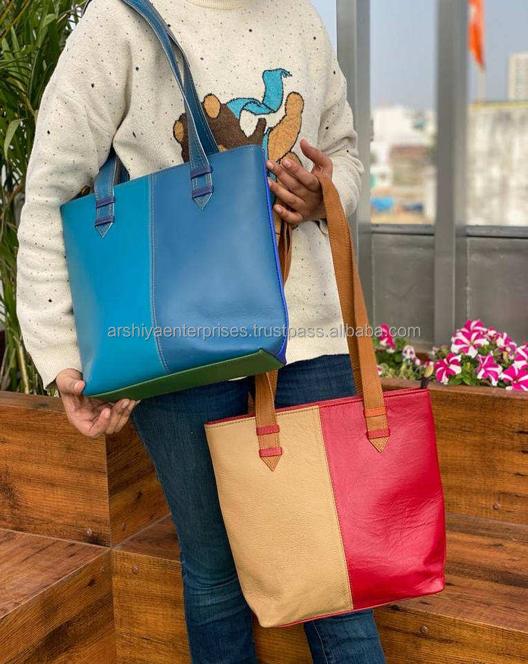 New Personalized Color Block Recycled Leather Tote Bags Wholesale Manufacturer Fashionable Colorful Leather Handbags for Women's