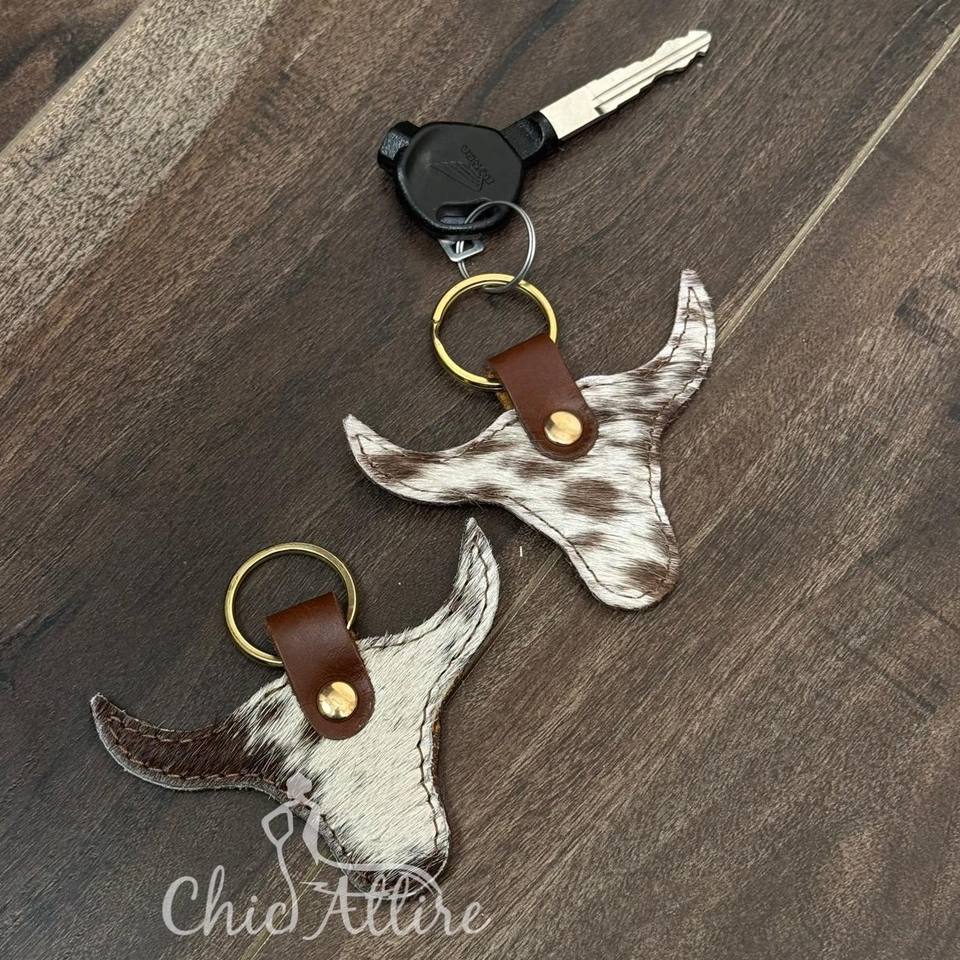 Western Hair-on Cowhide Leather Key Chain