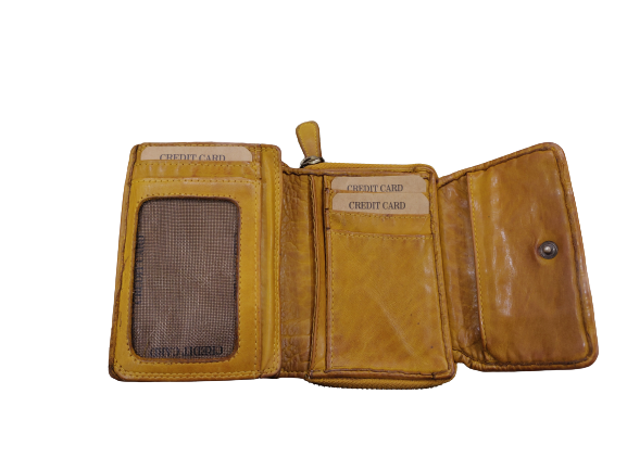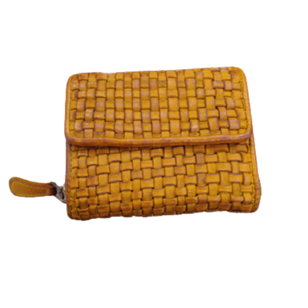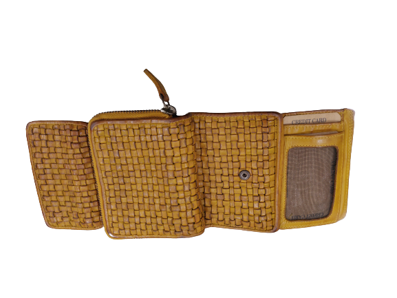 New Personalized Gold Handmade Hand Weaved Tri-folded Genuine Leather Ladies Wallet with Coin Chain Compartment