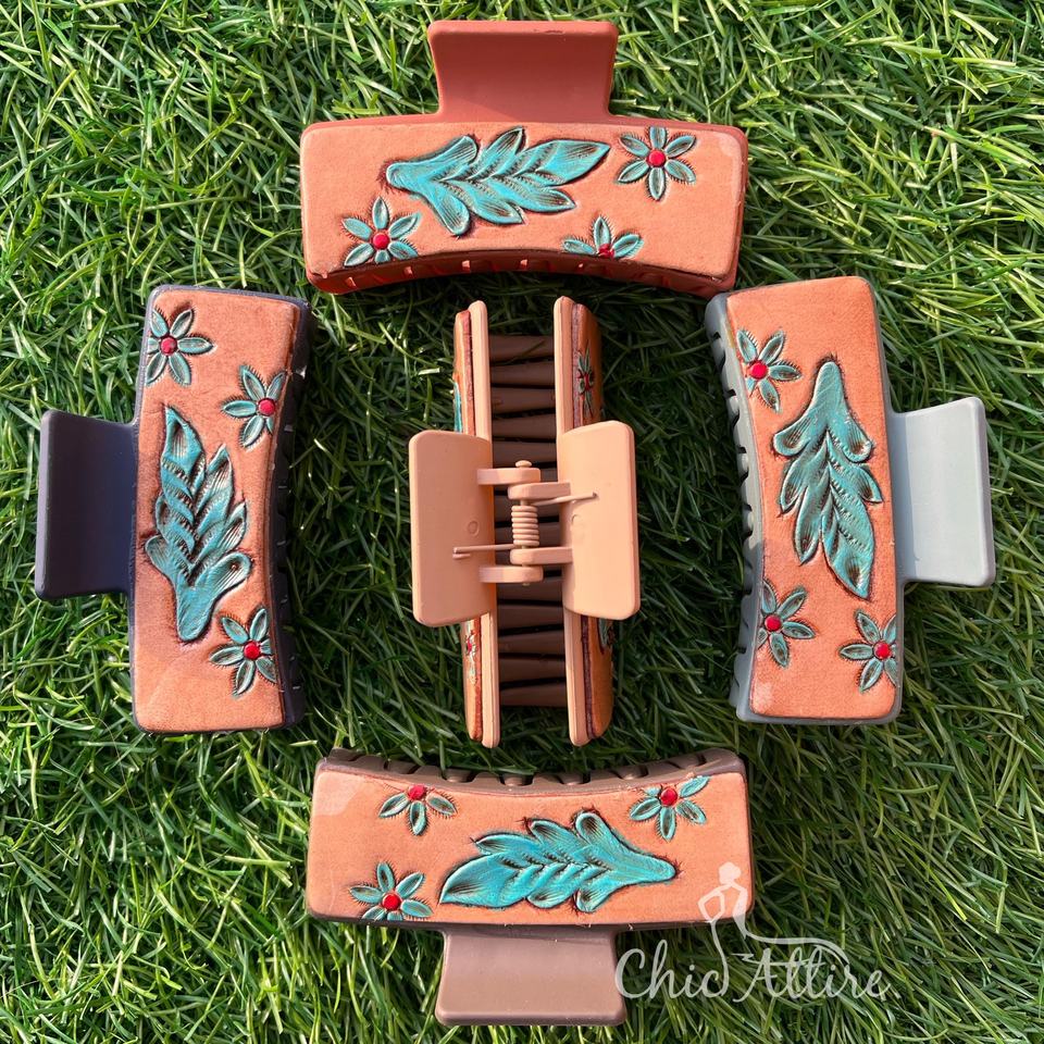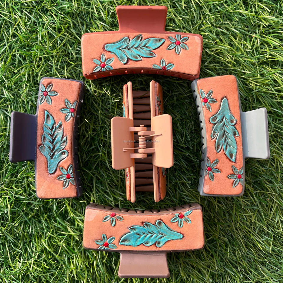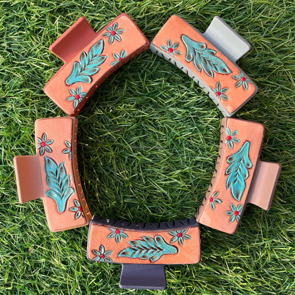 New Personalized Hand Tooled Leather Hair Claw Clips Cowboy Style Cowhide Leather Hair Claw for Women Luxury Designer Hair Clips