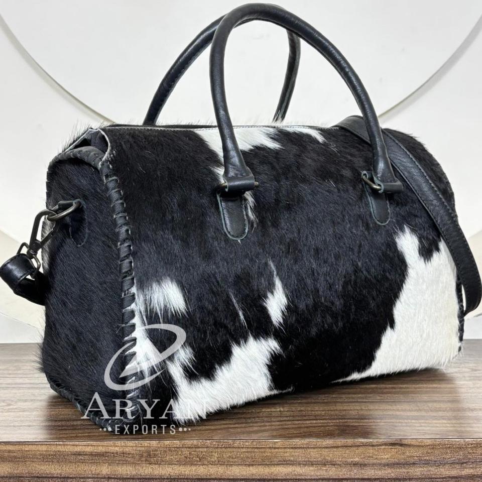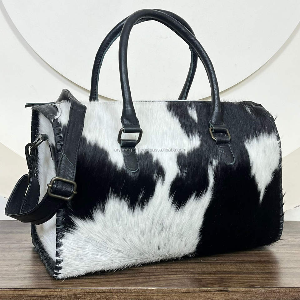 New Personalized Handmade Hair On Cowhide Leather Duffle Bags Vintage Overnight Genuine Leather Weekender Bag for Men and Women