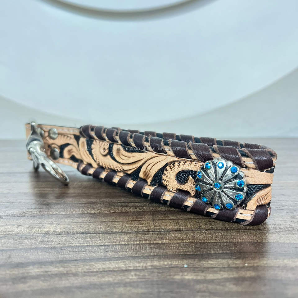 New Personalized Handmade Hand Tooled Genuine Leather With Flower Concho Pet Training Traffic Lead Dogs Accessory for Walking