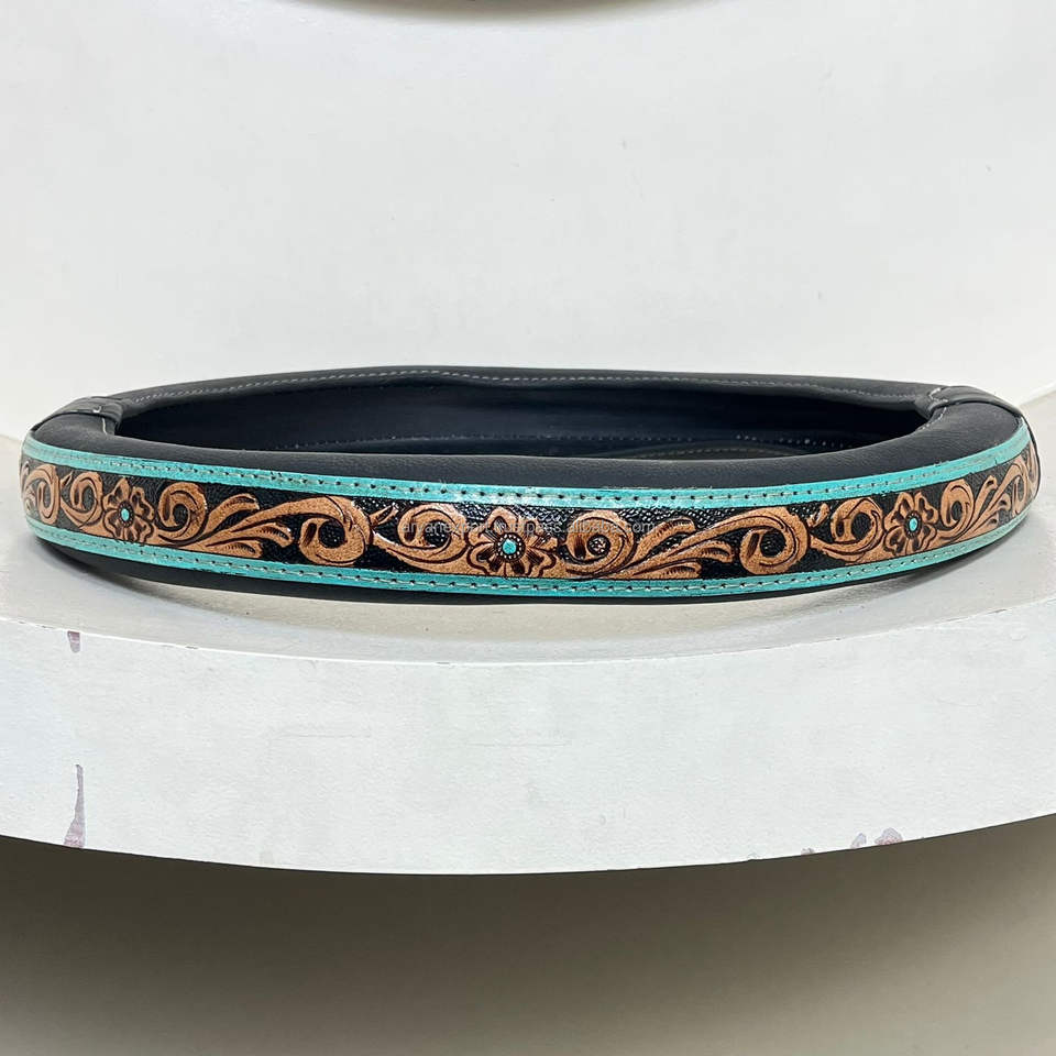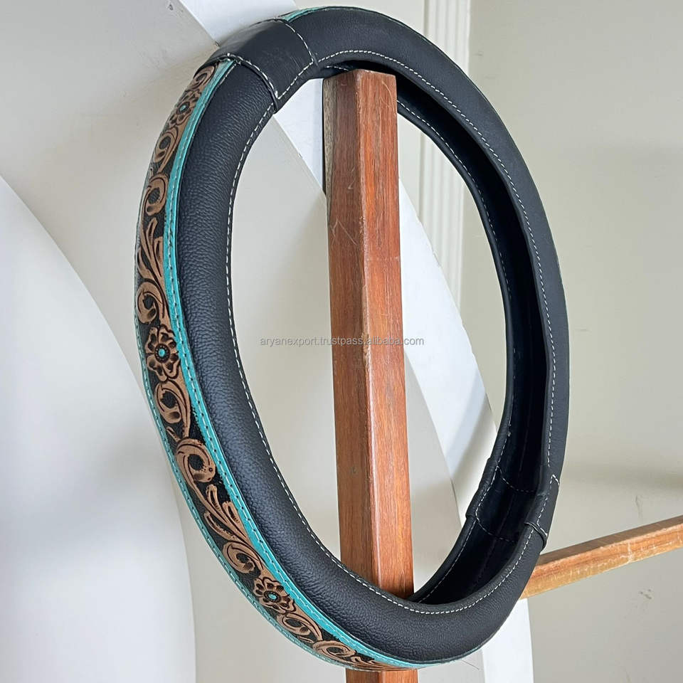 New Personalized Handmade Hand Tooled Leather Car Decoration Accessories Genuine Cow Leather Anti-slip Car Steering Wheel Cover