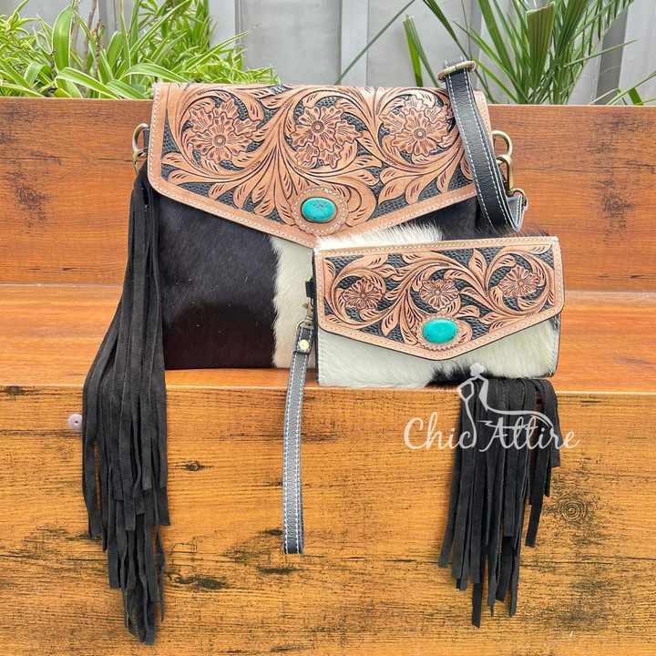 Product name:Hand Tooled Cowhide Leather 2-piece Combo Set
