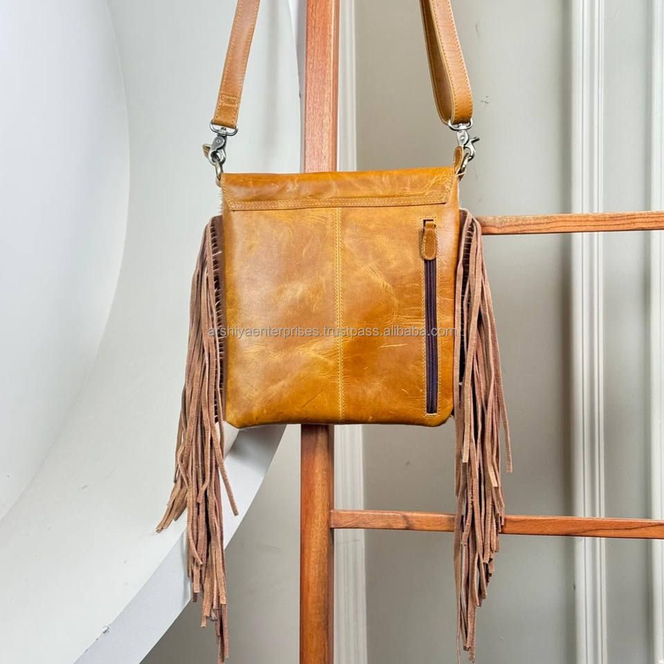 Hand Tooled Cowhide Leather Fringe Crossbody Bag