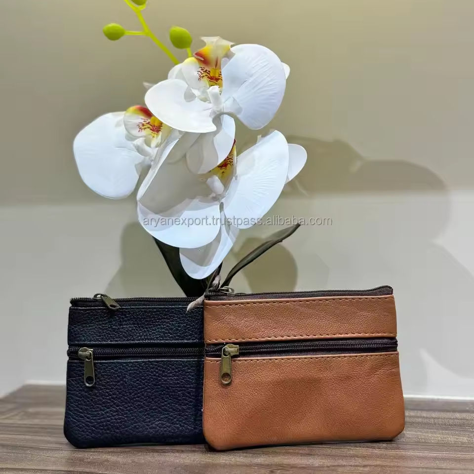 New Personalized Two Zip Genuine Leather Pouch Women's Mini Real Leather Custom Coin Purse Small Wallet Credit Card Holder Cases