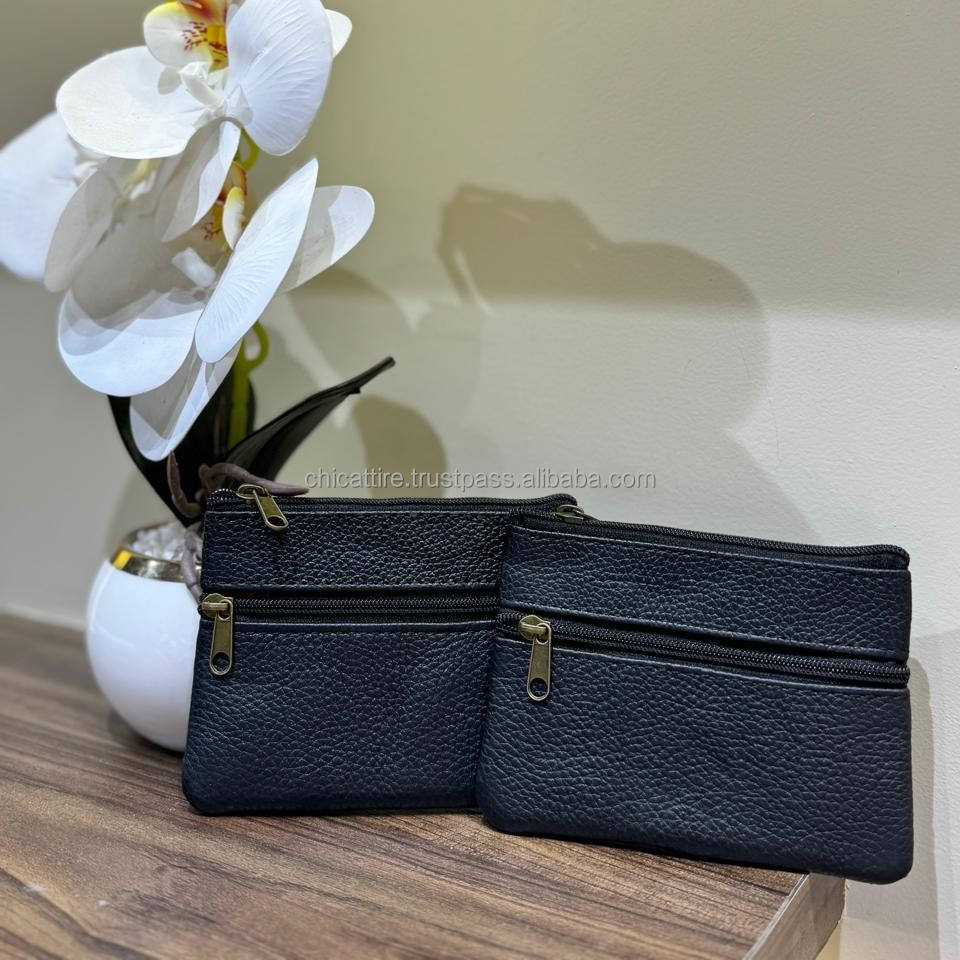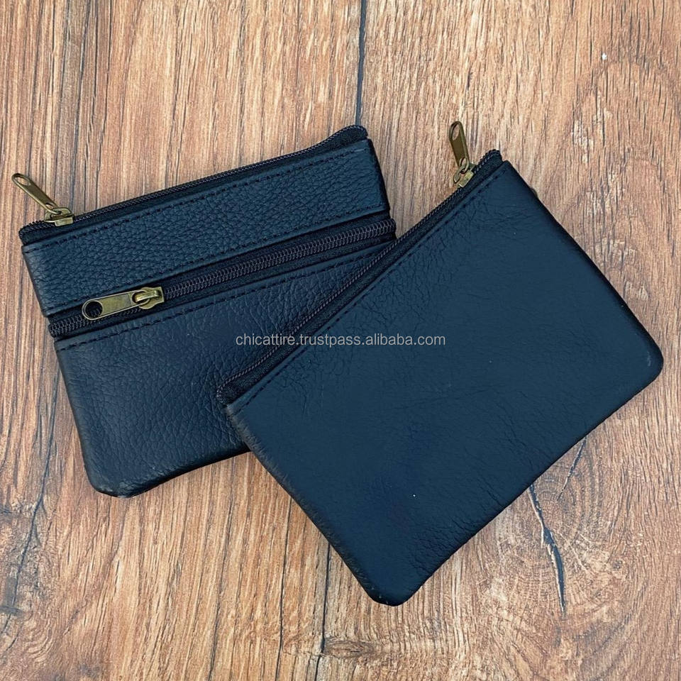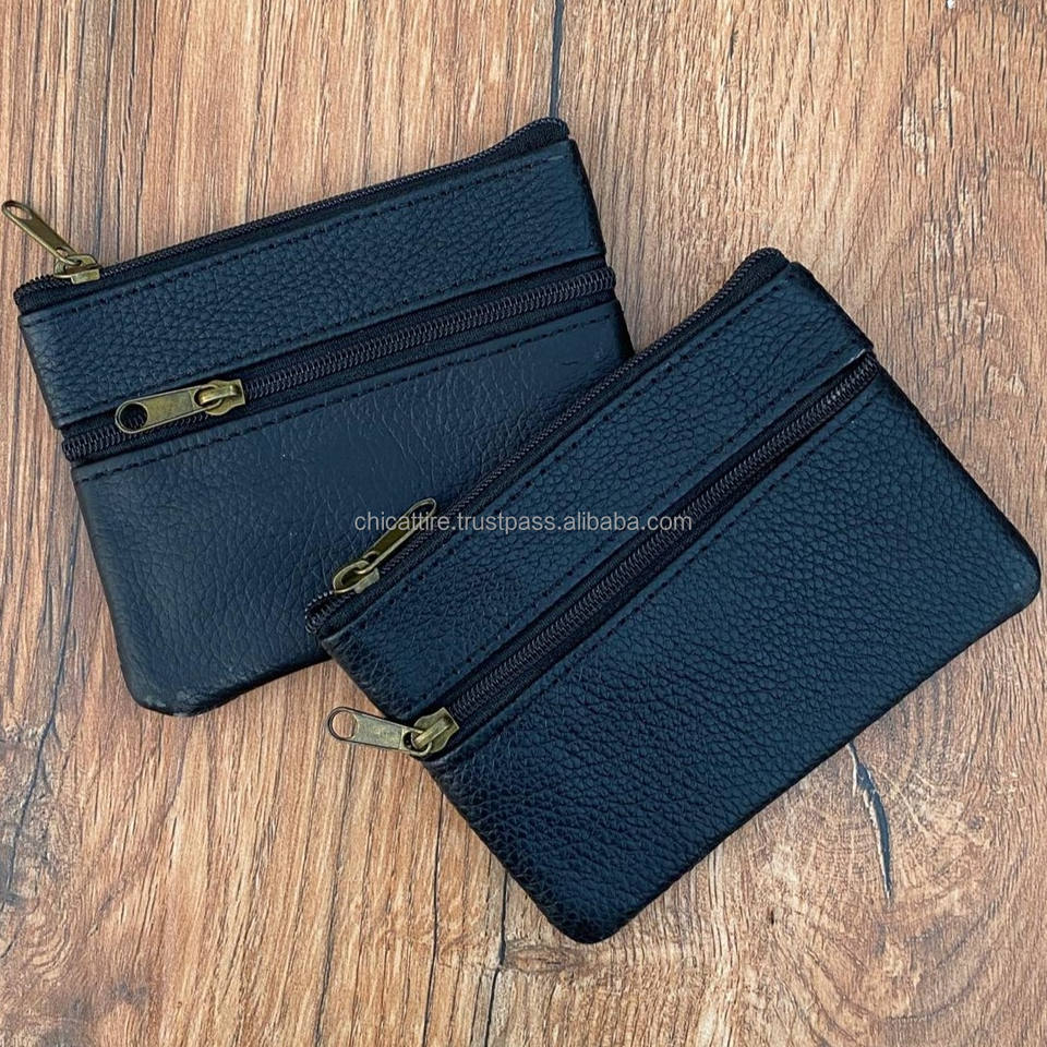 New Personalized Two Zip Genuine Leather Pouch Women's Mini Real Leather Custom Coin Purse Small Wallet Credit Card Holder Cases