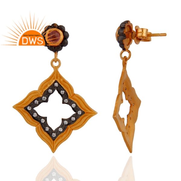 New Pink Tourmaline Earrings 18k Gold Plated Sterling Silver Fashion Drop Earrings Jewelry Supplier Classic Collection