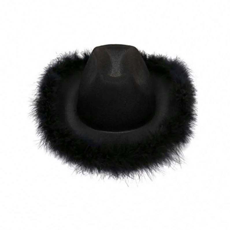 New Pink Western Style Cowgirl Hats for Women Girl Rolled Fedora Hat Party Feather Edge Pink Cowboy Hat