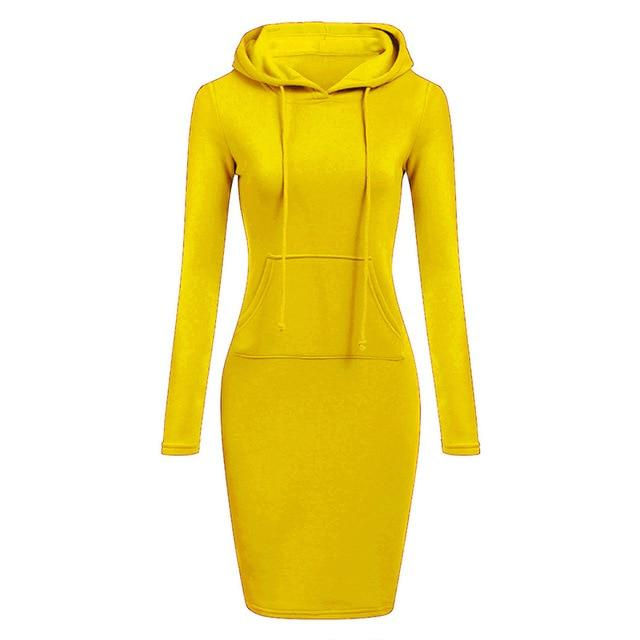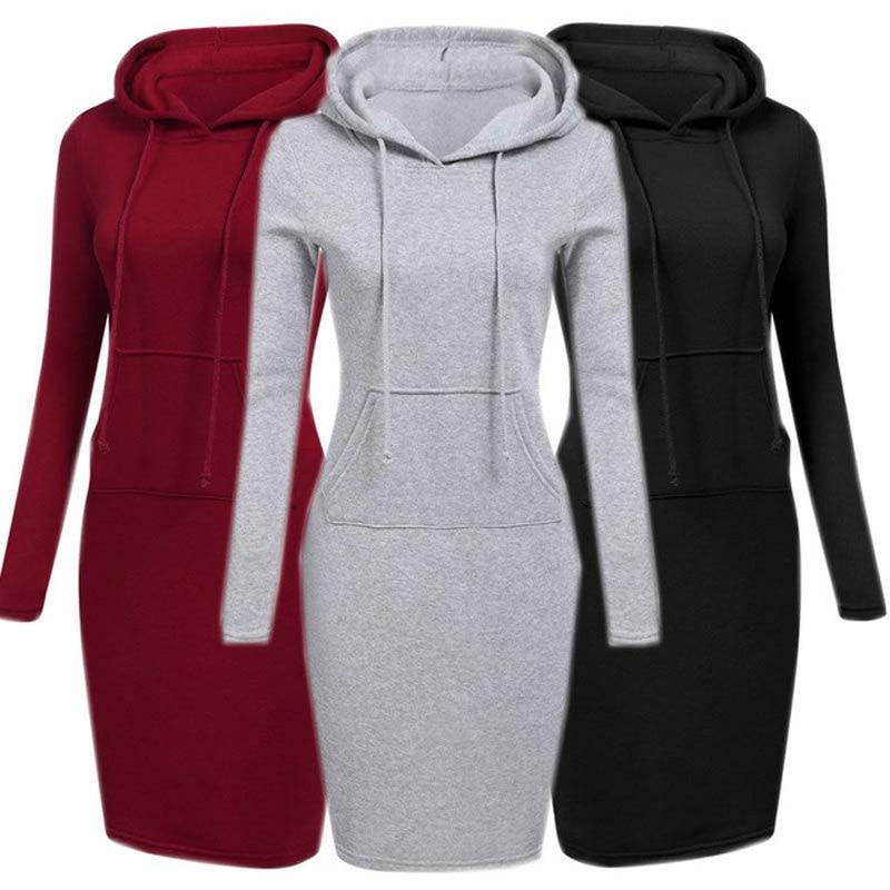 New Plain Pockets Pullover Casual Hoodies Women Long Sleeve Hoodies Dress