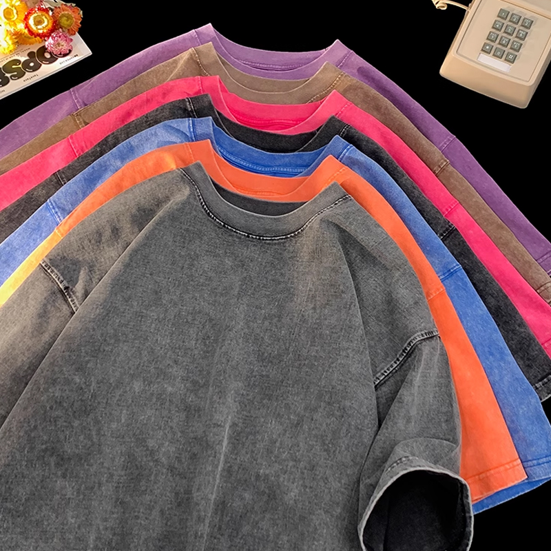 New Plus Size Mens Cotton Basic T Shirts Casual Tee Tops with Unique Pattern Design Acid Wash Style