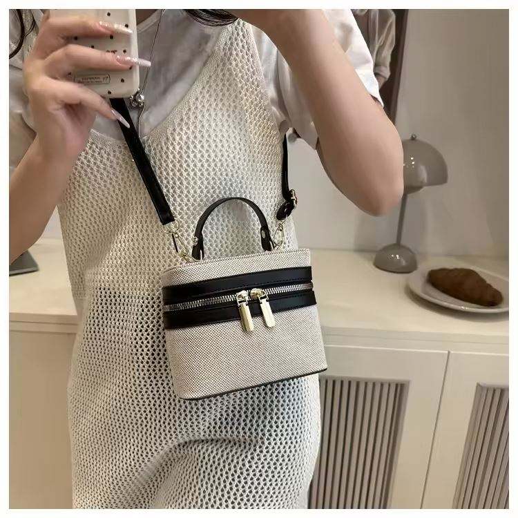 New Popular Designer Small Tote Bag Lady Canvas PU Leather Bucket Bag Single Shoulder Crossbody Clutch Handbag for Women