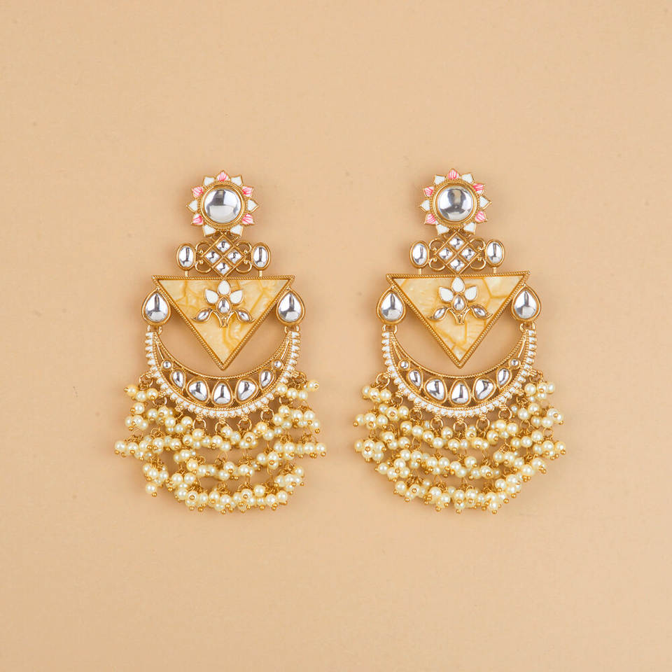 New Popular Indo Western Fashion Chandelier Earrings Mother of Pearl with Elegant Mehndi Plating