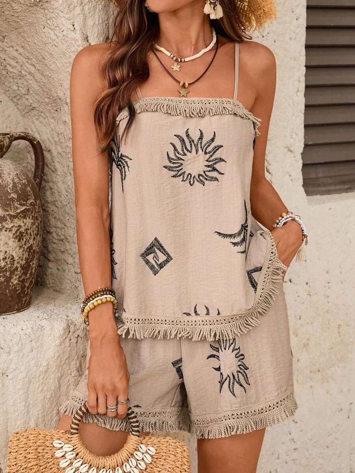 New Popular Pastel Green Embroidered Casual Solid Short Co Ord Set Stylish Woven Chiffon Sleeveless Top for Women 2025