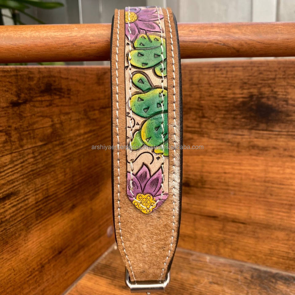 New Popular Products 2024 Trending Hand Tooled Leather Dog Collar Custom Genuine Cowhide Leather Pet Dog Training Puppy Collars