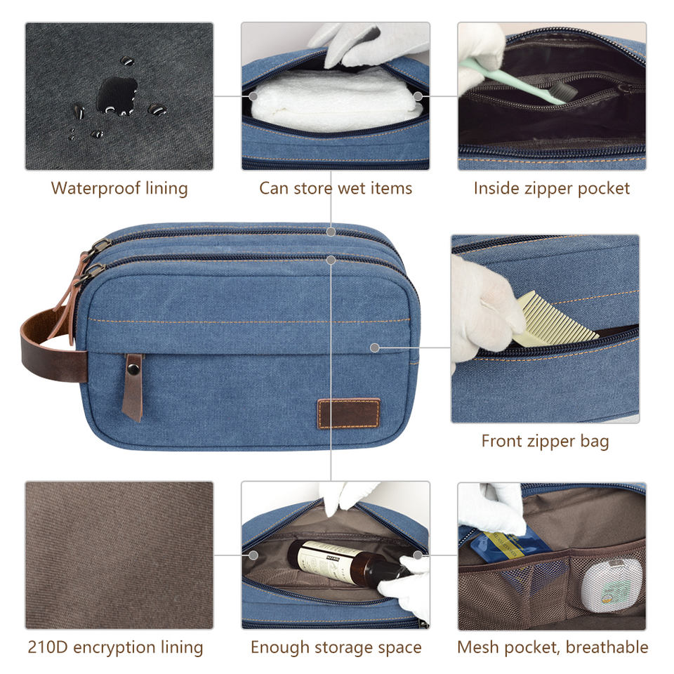 New Portable Custom Logo Canvas Dopp Kit for Bag with Zipper Closure for Men's Travel
