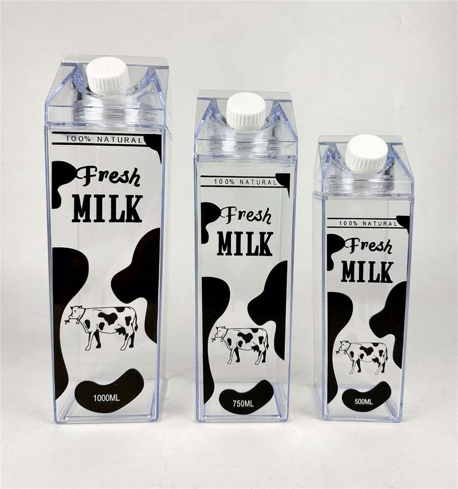 New Portable Drinking 17Oz 500Ml 34Oz 1000Ml Clear Acrylic Plastic Carton Shaped Milk Bottle Leak-Proof Unisex Party Dishwasher