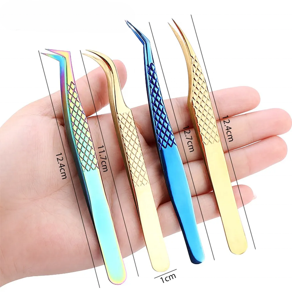 New Precision Stainless Steel False Eyelash Grafting Tweezers Slanted pointed Tip Type for Classic Extensions OEM Custom Logo