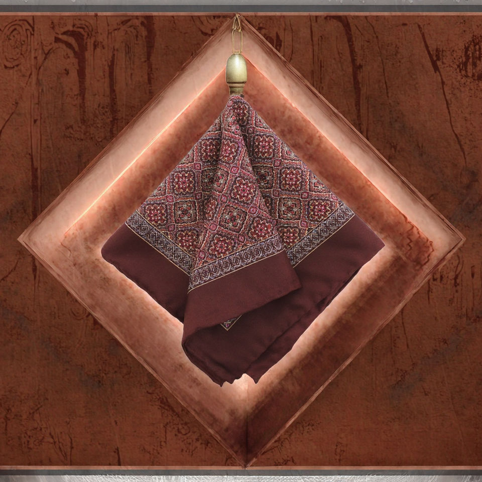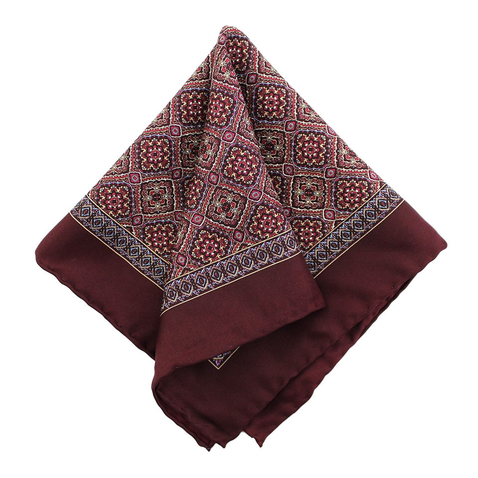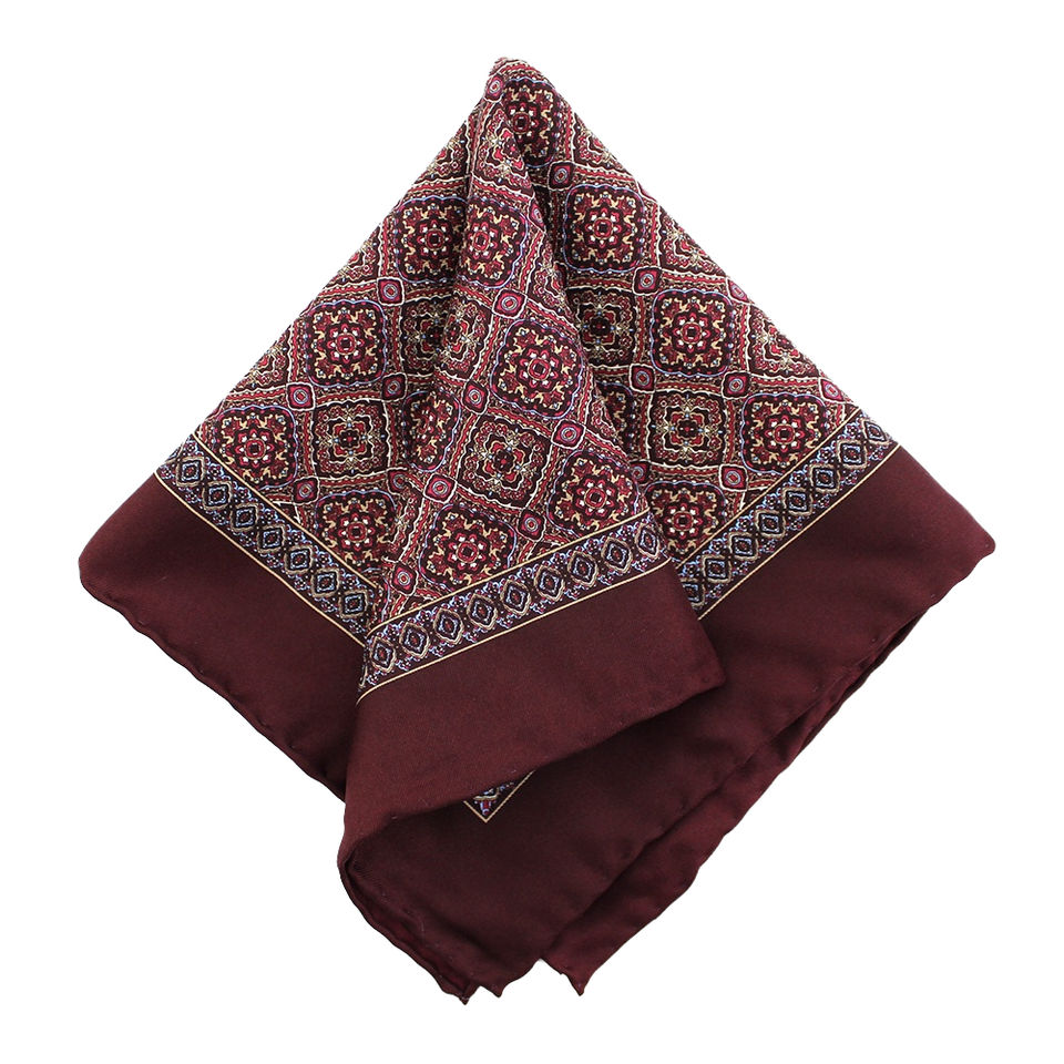 New Premium 100% Silk Handrolled Pocket Square Men's Burgundy Handkerchief Custom Geometric Floral Print Square Handkerchiefs
