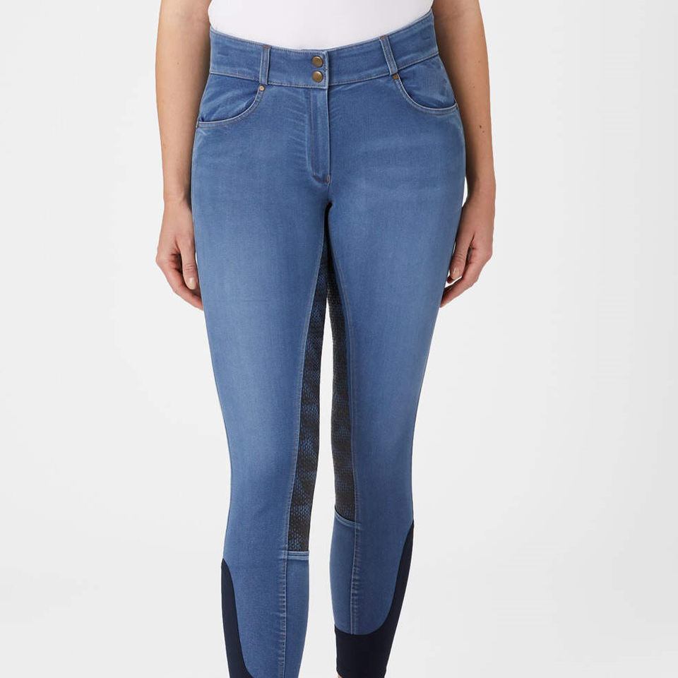 New Premium Design Equestrian Clothing Custom Manufacturing on Technical Denim Pants Horse Riding Breeches With Full Seat Grip