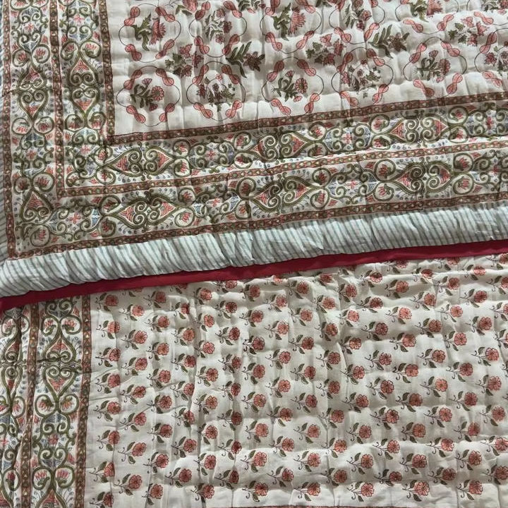 New Premium Design Organic Cotton Voile Bedding Set Handmade Quilt Reversible Razai Hand Block Printed Patchwork Warm Home Quilt
