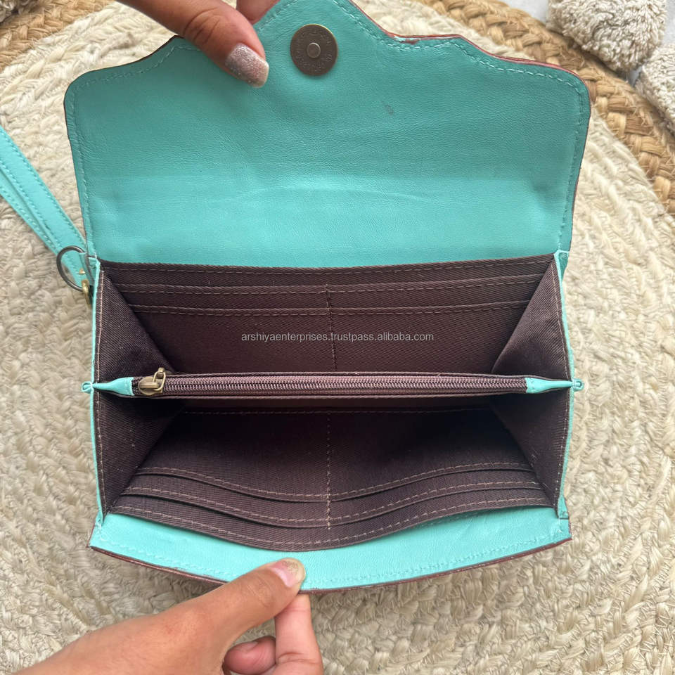 Product name:Hand Tooled Cowhide Leather Wristlet Wallet