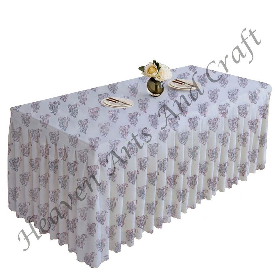 New Premium Hand Block Printed Floral Cotton Pleated Home Decor Tablecloth Rectangle Event Dining Pleated Tablecloth