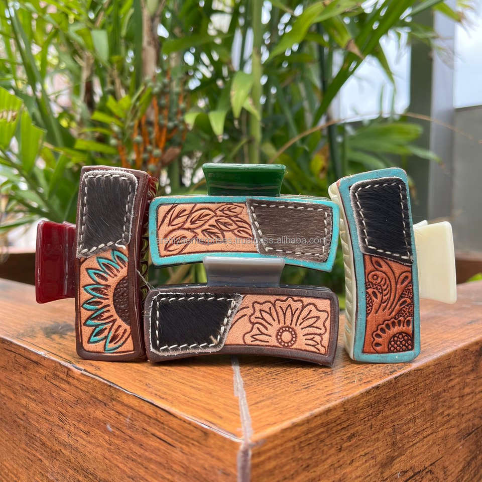 Product name:Hand Tooled Leather Women Hair Claw Clip