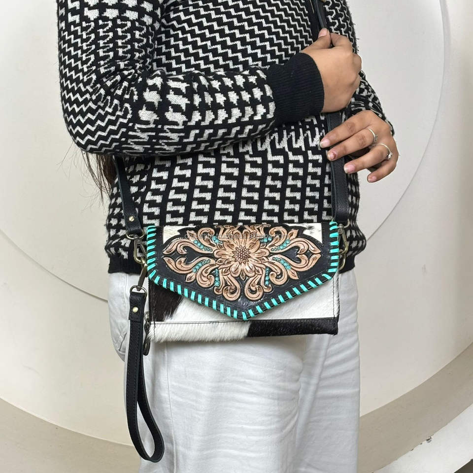 Product name:Hand Tooled Carving Leather Mini Crossbody handbag