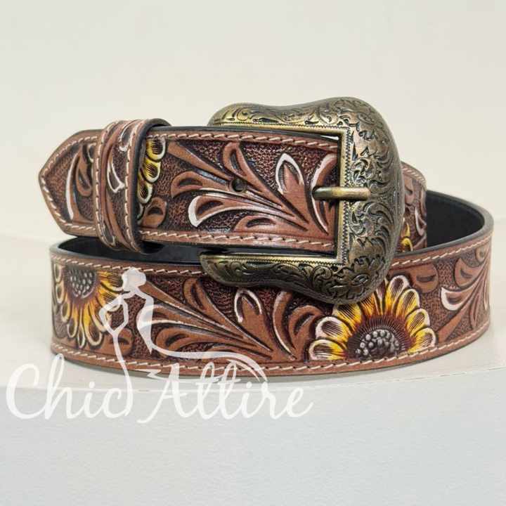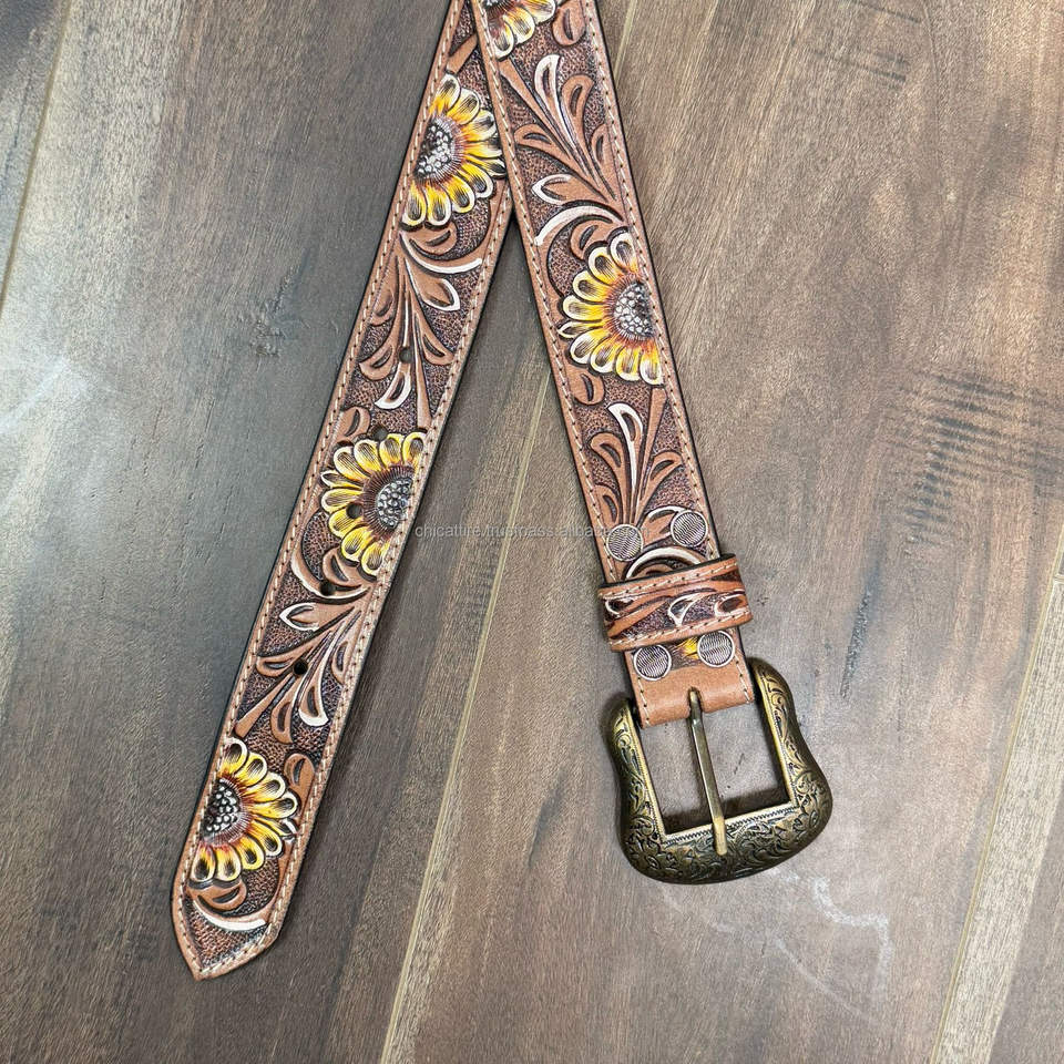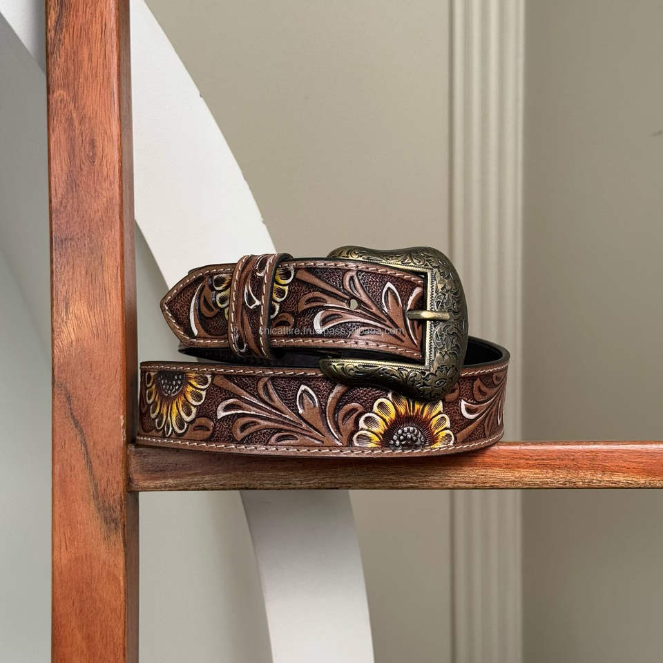 New Premium Quality Famous Floral Leaf Design Hand Tooled Leather Belt for Men & Women Customization Adjustable Cow Leather Belt