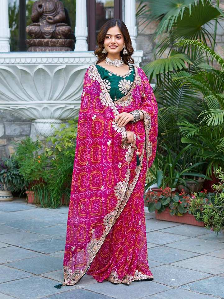 New Premium Traditional Ethnic Pure Bandhrej Saree For Women Latest Fashion Heavy Pitha and Gota Patti Work