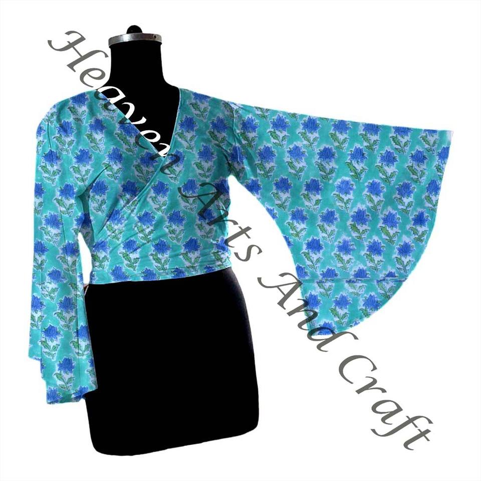 Model Number:Hand Block Print Cotton Tie Tops Bell Sleeves