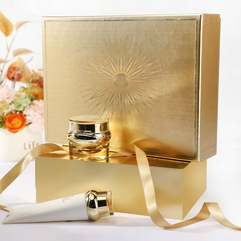New Process Gold Printing Packaging Box 4 Sets of Skin Care Set Box Inserted Into the Paper-plastic Lining Packaging