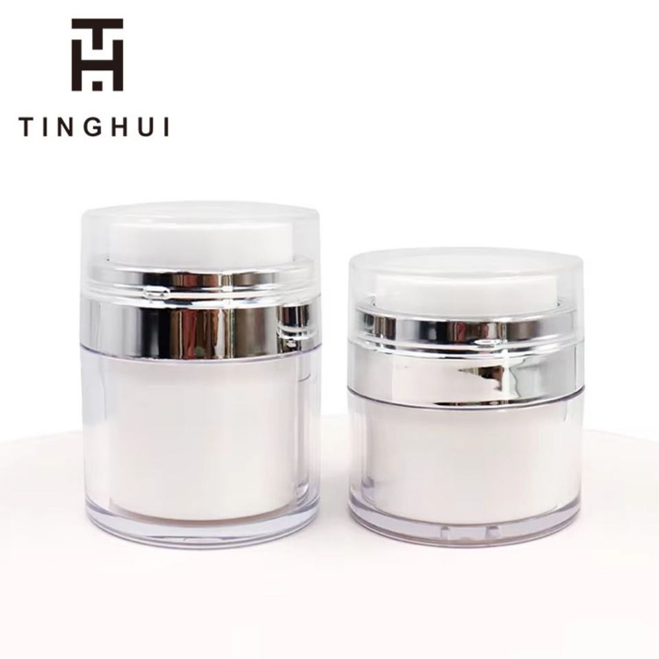 New Product 1.7 oz Airless Pump Jars Empty Acrylic Makeup Cosmetic Jar Containers with Pump Refillable Airless Travel Lotion Jar