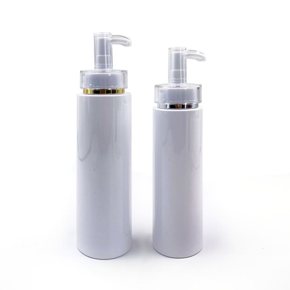 New Product 100ml 150ml 200ml 250ml 300ml 350ml 400ml 500ml White Pump Bottle with Gold Silver Line Cap