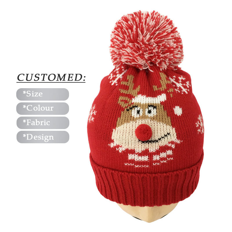 New Product Beanie Soft 100% Acrylic Winter Warm Comfortable Reindeer Unisex Knitted Jacquard Pom Pom Christmas Hat