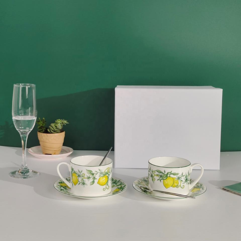 New Product European Lemon Pattern Porcelain Cup and Saucer Set