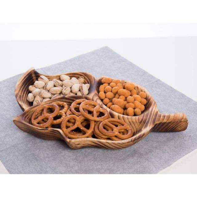 Wood serving tray with leaf shape for ChristmasProduct Name