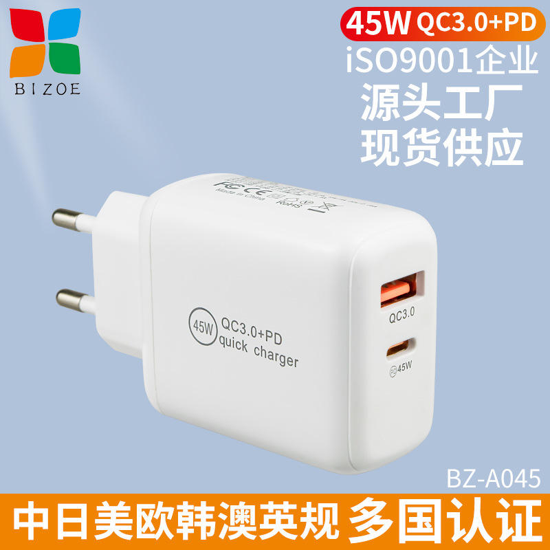 New Product PD45W Dual Port A+C Fast Mobile Phone Charger 45W EU Plug Direct Sale