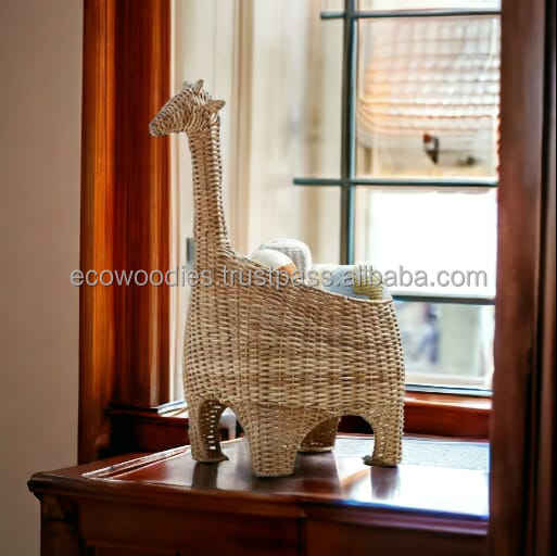 New Product R Hyacinth Woven Rattan Animal Shape Storage Basket Toy Storage Gift Rattan Basket for Nursery Kids Room Decor