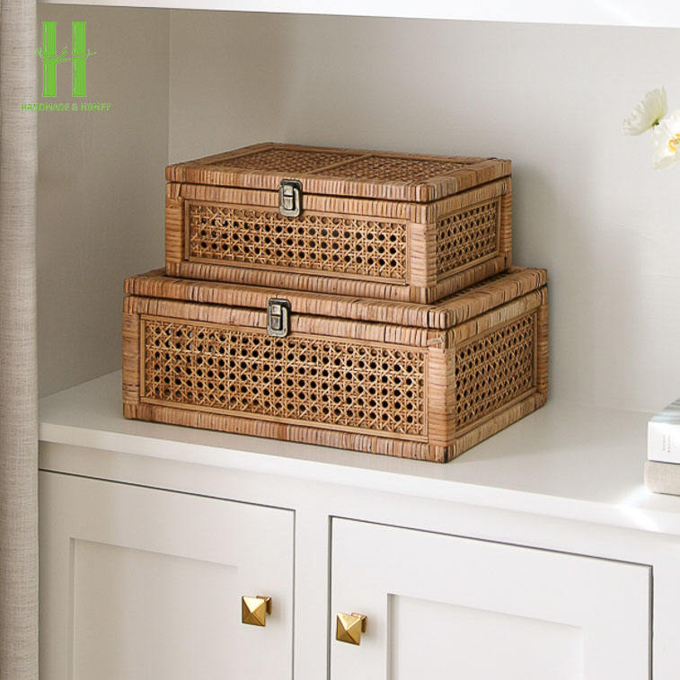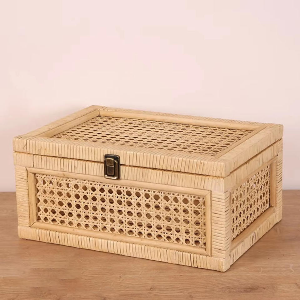 New Product Rattan Box Vintage Natural Storage Gift Organization OEM Handwoven Cane Boxes Organizer Wicker Storage Baskets