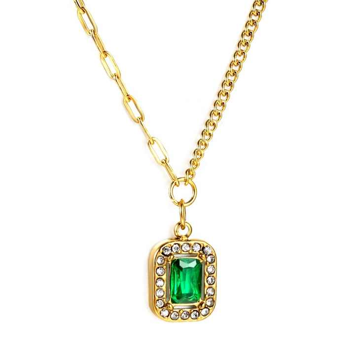 New Product square Green Gem Stone Necklace Charms Jewelry Stainless Steel 18k Gold Plated Crystal Diamond Gemstone Necklaces
