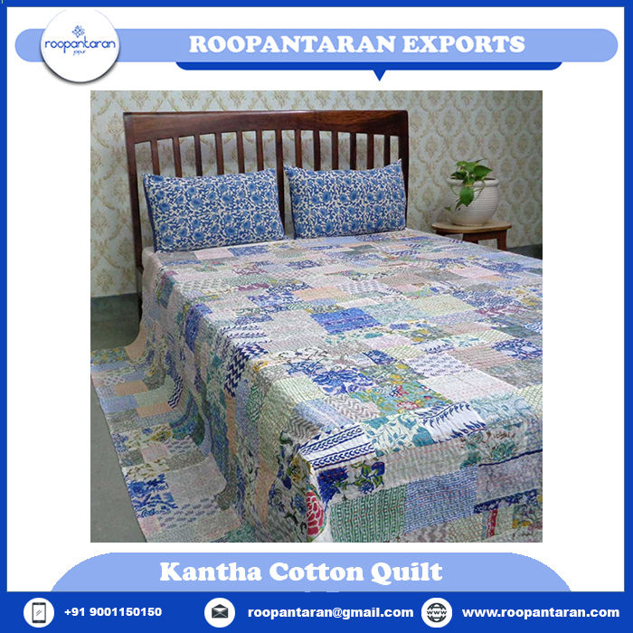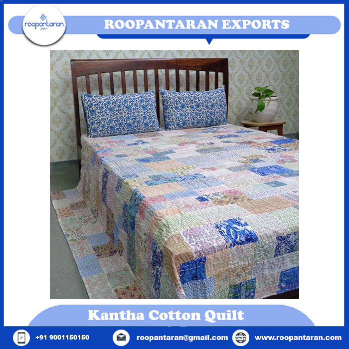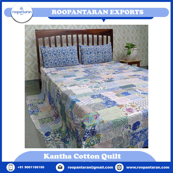 New Products Direct Manufacturer Sale-High Quality Indian Hand Block Printed Organic Cotton Queen Size Kantha Quilt Best Price